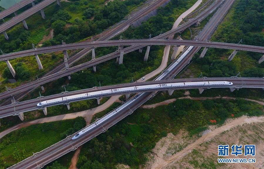 動(dòng)車行駛在廣西南寧市屯里特大橋上(7月1日無人機(jī)拍攝)。 廣西壯族自治區(qū)成立60年來,鐵路建設(shè)發(fā)生翻天覆地的變化。來自中國鐵路南寧局集團(tuán)有限公司的數(shù)據(jù)顯示,1958年廣西鐵路總里程為1346.3公里,如今廣西鐵路總里程達(dá)5191公里。廣西與周邊相鄰省份間實(shí)現(xiàn)動(dòng)車“公交化”開行。此外,北部灣港—重慶班列、東盟海產(chǎn)品冷鏈班列、“百色一號(hào)”果蔬專列等的開通和運(yùn)營,強(qiáng)化了鐵路供給的針對性和有效性。鐵路成為助推廣西經(jīng)濟(jì)社會(huì)快速發(fā)展的“大動(dòng)脈”。 新華社記者黃孝邦攝