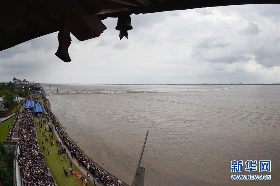 9月27日,人們?cè)谡憬幨宣}官鎮(zhèn)觀看錢塘江大潮。當(dāng)日是農(nóng)歷八月十八,號(hào)稱“天下第一潮”的錢塘江大潮洶涌而來,眾多錢塘江沿岸居民和游客爭(zhēng)睹其壯觀景象。新華社記者 黃宗治 攝