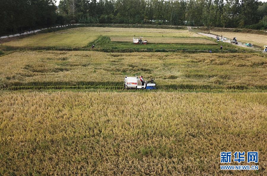 正值秋收時(shí)節(jié),安徽省鳳陽縣小崗村水稻陸續(xù)成熟,進(jìn)入收割期。當(dāng)?shù)剞r(nóng)民利用晴好天氣搶收水稻,確保顆粒歸倉。