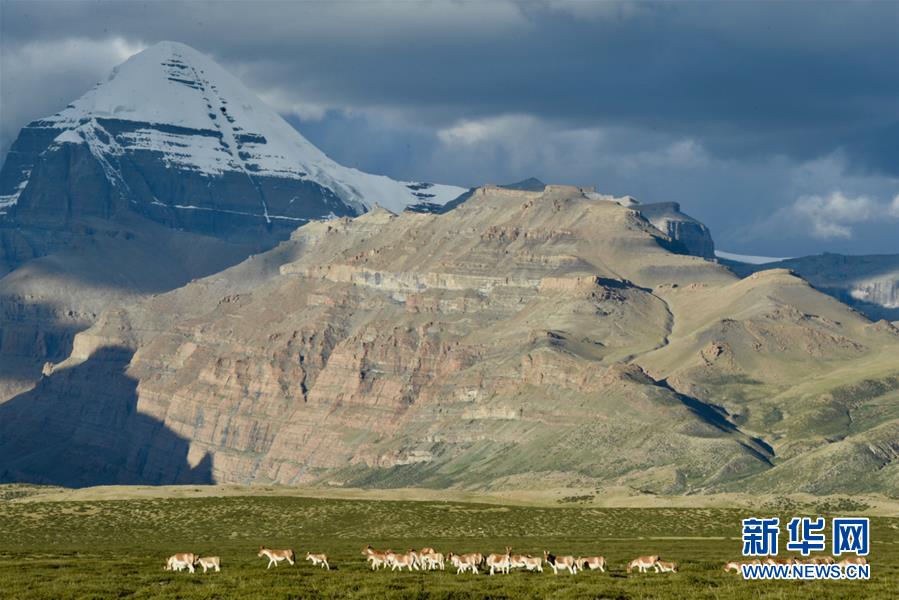 在西藏阿里地區(qū)岡仁波齊峰腳下的國家一級保護動物藏野驢(9月11日攝)。 阿里地處西藏西部,平均海拔4500米以上,面積30多萬平方公里,羌塘國家級自然保護區(qū)幾乎涵蓋整個阿里地區(qū),是眾多野生動物生活的樂園。 新華社記者 普布扎西 攝