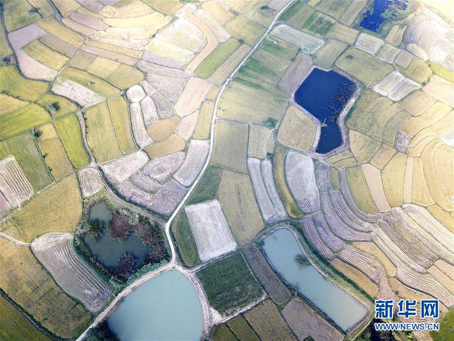這是小崗村的稻田(9月26日無人機拍攝)。 新華社記者 劉軍喜攝