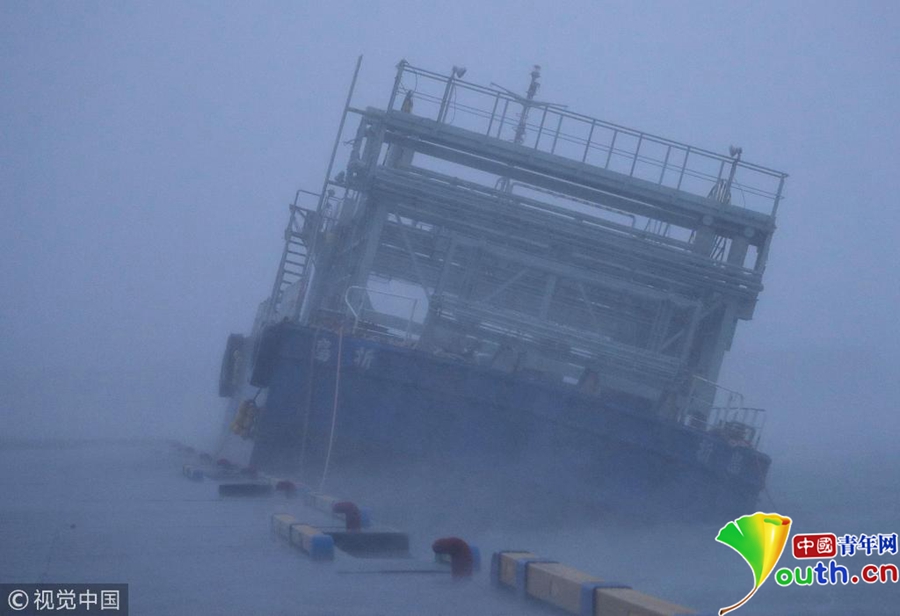 臺(tái)風(fēng)“潭美”強(qiáng)勢(shì)襲擊日本 游船歪倒在岸邊