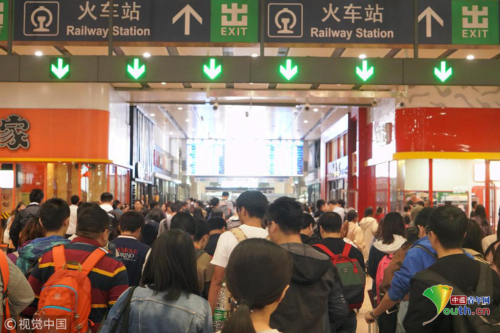 2018年10月1日,江蘇淮安,國(guó)慶長(zhǎng)假首日淮安汽車總站迎來(lái)客流高峰,出行的旅客絡(luò)繹不絕。圖片作者:張照久