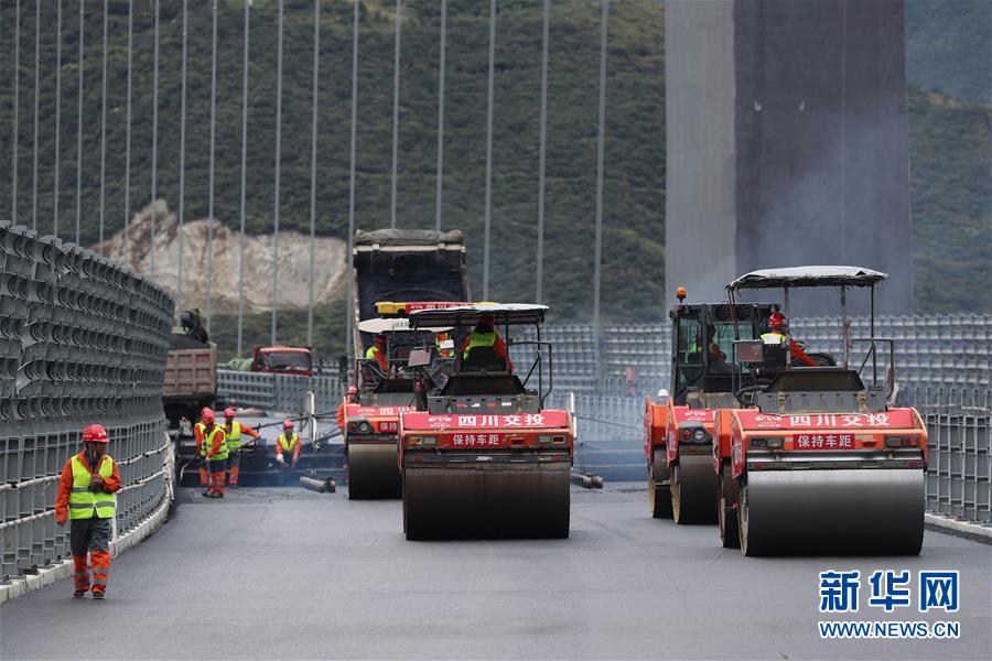 10月1日,建筑工人在雅康高速瀘定大渡河興康特大橋施工現(xiàn)場作業(yè)。當日是國慶節(jié),許多勞動者堅守在工作一線,在崗位上度過節(jié)日。新華社記者江宏景攝