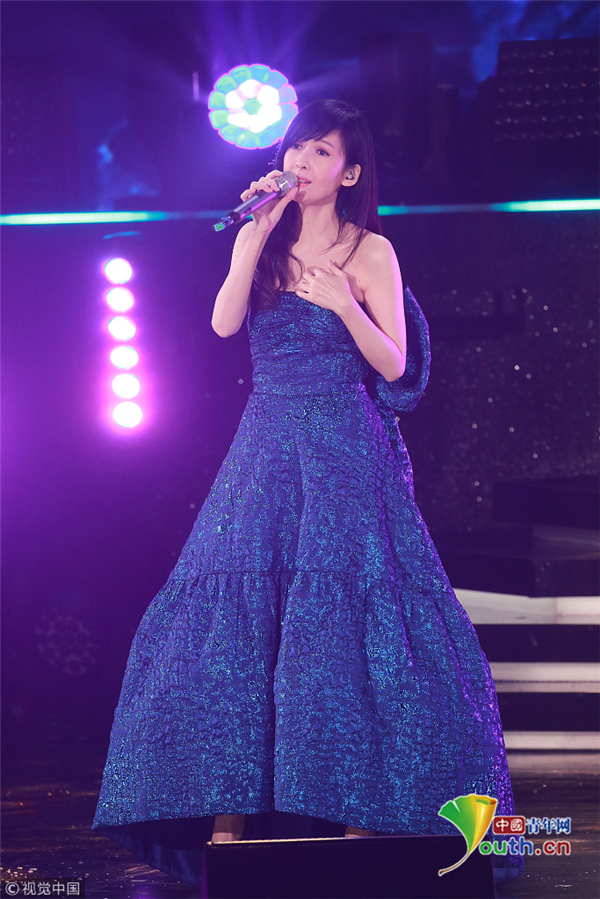 50歲周慧敏穿長裙深情獻唱 皮膚姣好美貌依舊