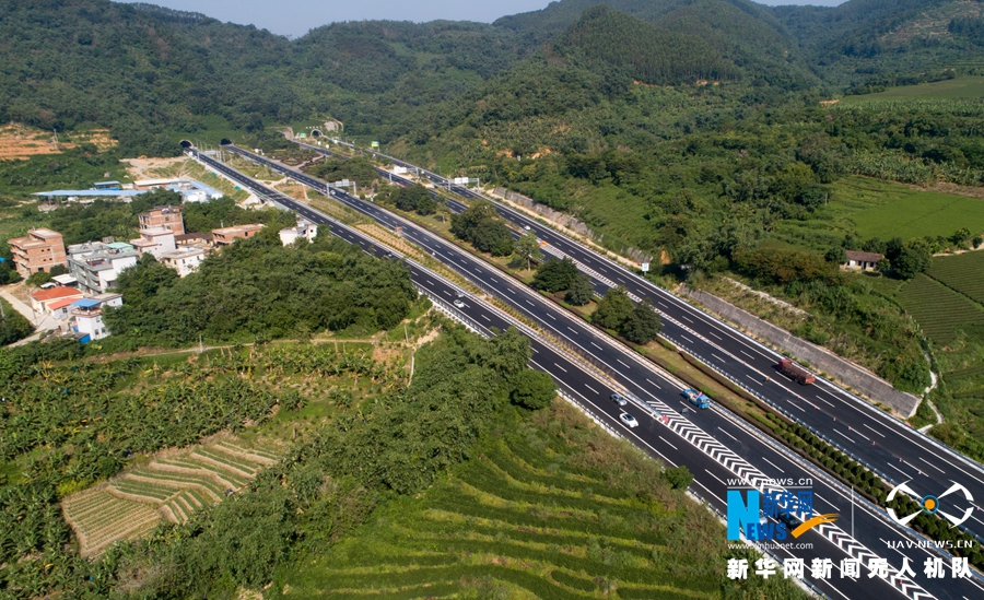 這是改擴建工程施工之后的風霜嶺隧道外景觀。道路拓寬,坡度平緩(無人機拍攝)。新華網(wǎng) 肖和勇 攝