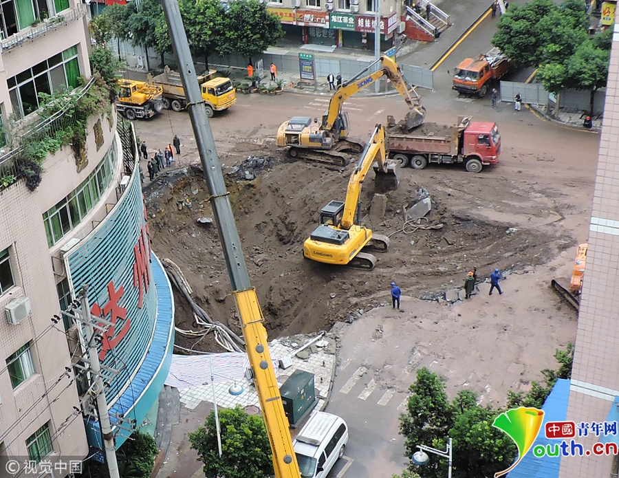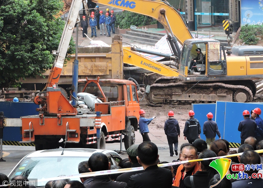 中國(guó)青年網(wǎng)北京10月9日電 2018年10月8日消息,四川達(dá)州。10月8日從四川省達(dá)州市達(dá)川區(qū)委宣傳部獲悉,7日14時(shí)30分左右,達(dá)川區(qū)東環(huán)南路103號(hào)人行道路面發(fā)生塌陷險(xiǎn)情,經(jīng)調(diào)取視頻監(jiān)控和走訪周邊群眾,救援人員初步判斷疑似有4人掉入坑中。圖片作者:視覺(jué)中國(guó)