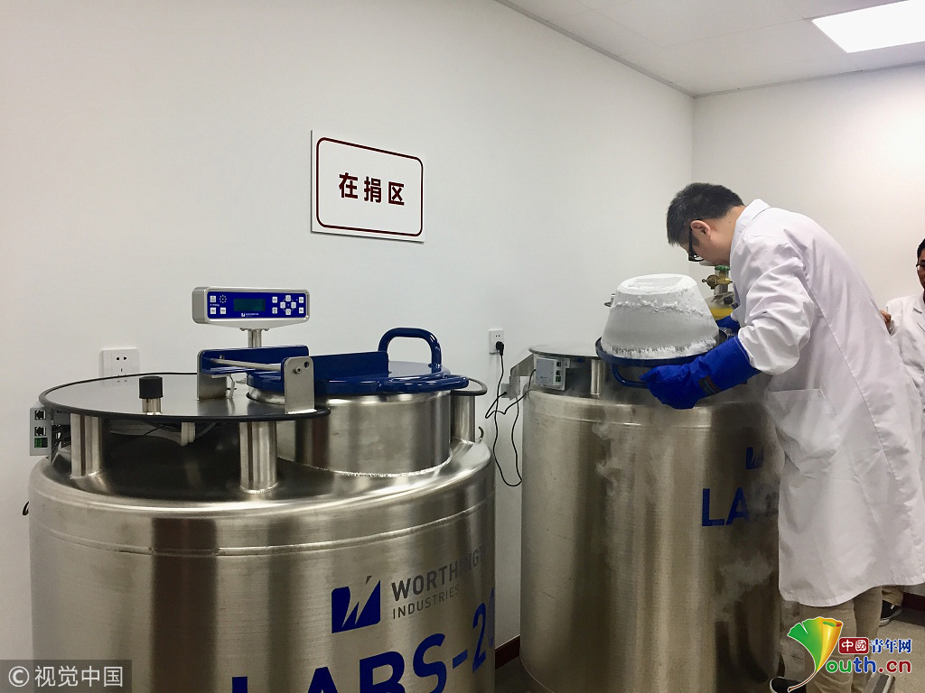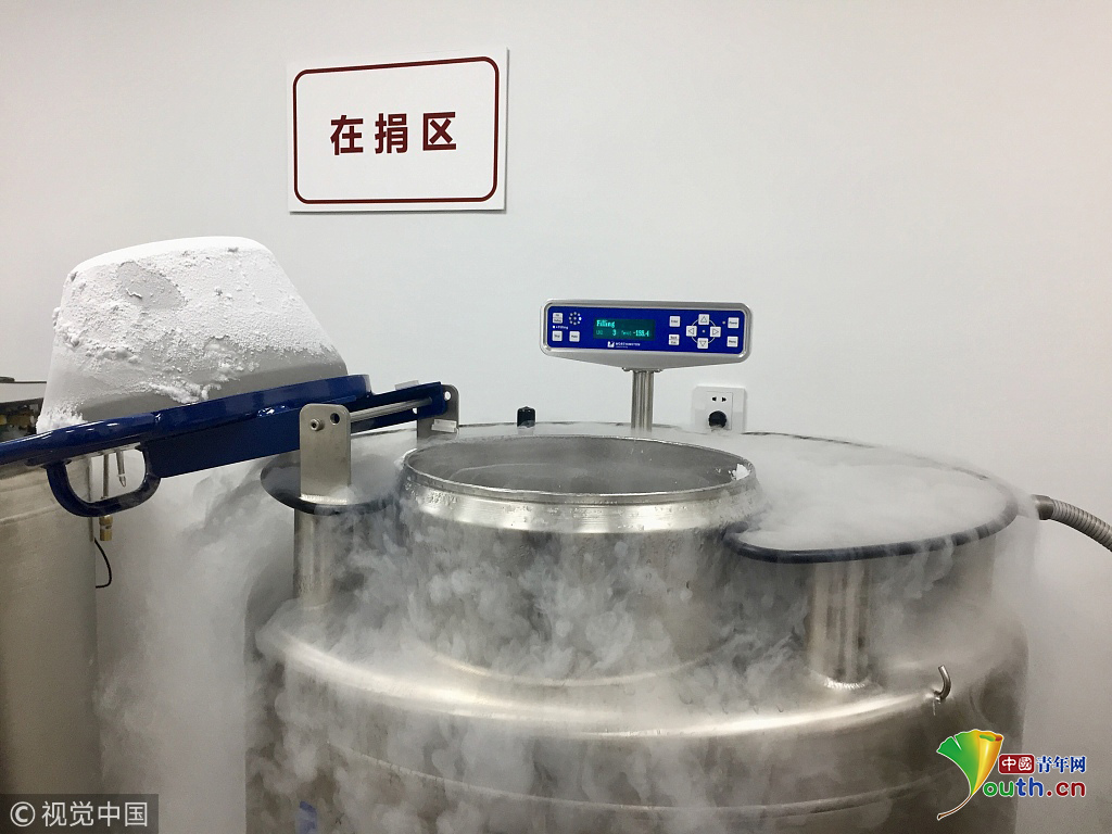 2018年9月20日,上海,實(shí)拍復(fù)旦大學(xué)人類精子庫。在復(fù)旦大學(xué)人類精子庫,志愿者捐獻(xiàn)出的精液被保存在液氮中。圖片作者:陳斯斯