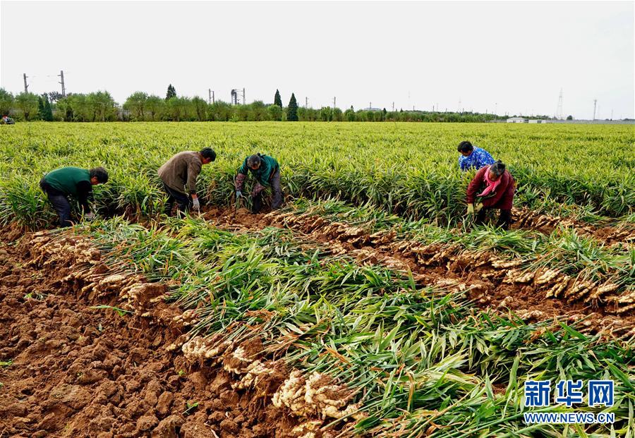 10月9日,秦皇島市撫寧區(qū)留守營鎮(zhèn)桑園村農民在收獲生姜。 近年來,河北省秦皇島市撫寧區(qū)在農業(yè)結構調整過程中,引導當?shù)剞r民種植優(yōu)質無公害生姜,并安排農業(yè)技術員定期到田間指導農民對生姜進行標準化管理。據介紹,今年該縣生姜種植面積1萬多畝,預計產生姜5萬噸,種植戶每畝純收入達1萬多元。 新華社記者 楊世堯 攝