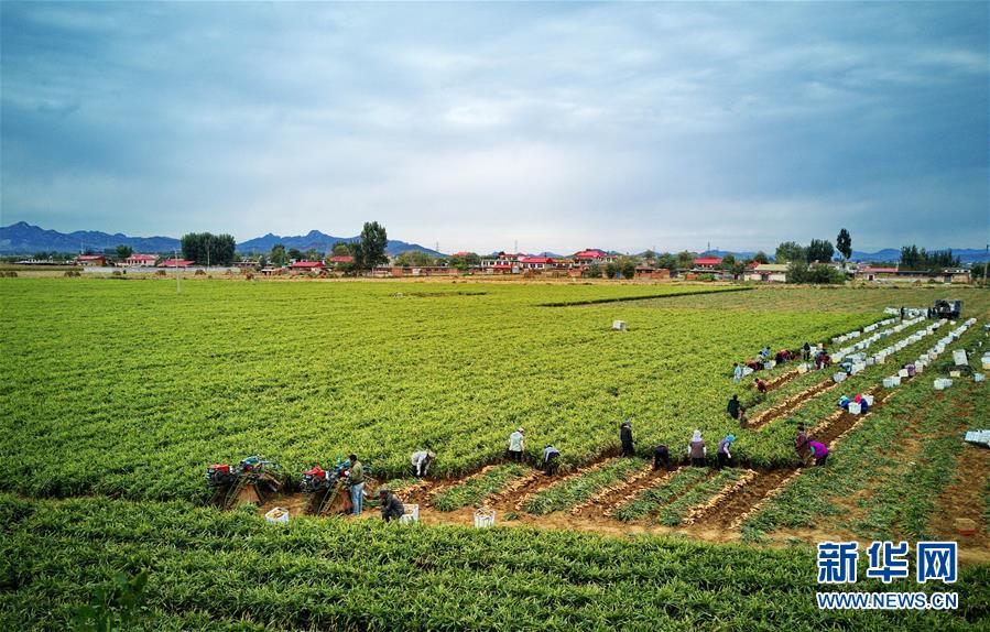 10月9日,秦皇島市撫寧區(qū)留守營鎮(zhèn)桑園村農民在收獲生姜(無人機拍攝)。 近年來,河北省秦皇島市撫寧區(qū)在農業(yè)結構調整過程中,引導當?shù)剞r民種植優(yōu)質無公害生姜,并安排農業(yè)技術員定期到田間指導農民對生姜進行標準化管理。據介紹,今年該縣生姜種植面積1萬多畝,預計產生姜5萬噸,種植戶每畝純收入達1萬多元。 新華社記者 楊世堯 攝