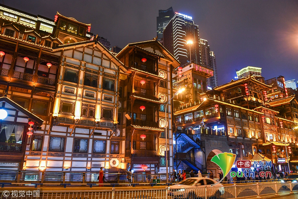 重慶網(wǎng)紅景點(diǎn)游人如織 洪崖洞夜景輝煌