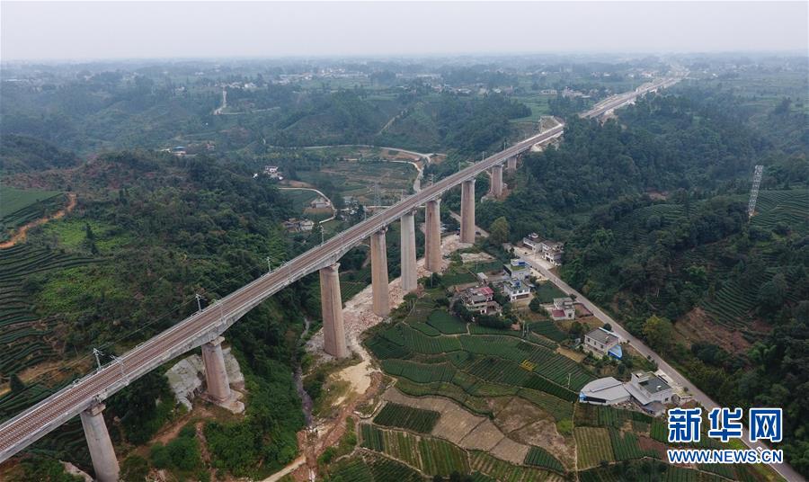 這是10月11日無人機拍攝的川藏鐵路成雅段一座鐵路橋。新華社記者薛玉斌攝