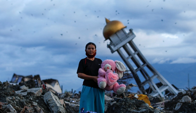 10月17日,種植戶陳元生抱著收獲的稻子。