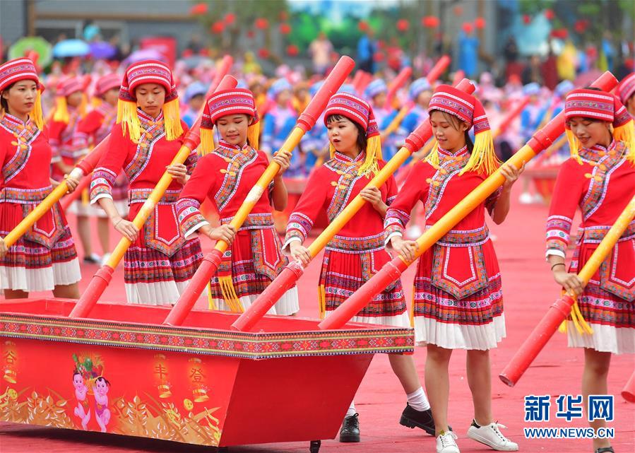 10月20日,各族同胞在廣西大化瑤族自治縣江濱文化廣場表演節(jié)目,慶??h慶?! ⌒氯A社記者陸波岸攝
