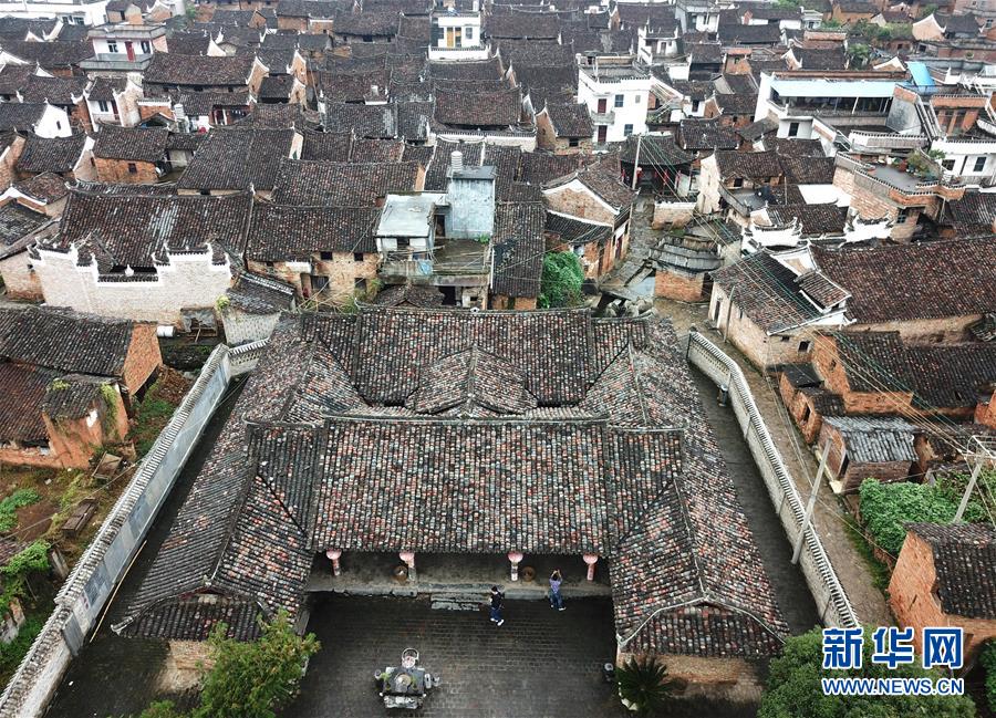 廣西富川瑤族自治縣朝東鎮(zhèn)福溪村連片古民居群(10月19日無(wú)人機(jī)拍攝)?! ⌒氯A社記者 周華 攝