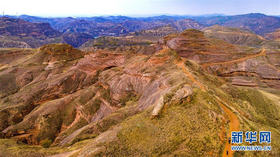 在黃土高原的陜西省延安市安塞區(qū)坪橋鎮(zhèn)王家灣,有一處峽谷丹霞地貌,是2017年陜西省地質(zhì)調(diào)查院在陜北及渭北地區(qū)發(fā)現(xiàn)大規(guī)模丹霞地貌的一部分。這里的山勢(shì)頂部被黃土覆蓋,底部經(jīng)流水下切侵蝕紅色砂巖外露,出露的巖石紋理如波浪,深秋中猶如一幅流動(dòng)的畫(huà)卷。