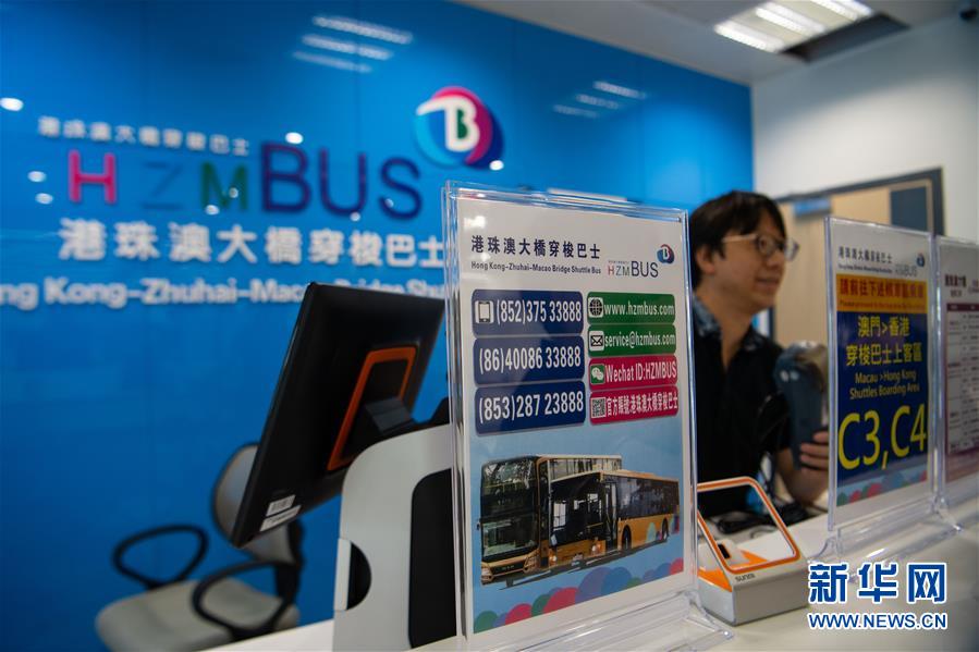 位于港珠澳大橋澳門邊檢大樓的穿梭巴士售票處(10月19日攝)。 港珠澳大橋?qū)⒂诒驹?4日通車運營,成為連接香港、澳門的新通道。記者19日驅(qū)車前往澳門口岸實地采訪,了解口岸內(nèi)部設(shè)置和準(zhǔn)備工作情況。 新華社記者 張金加 攝