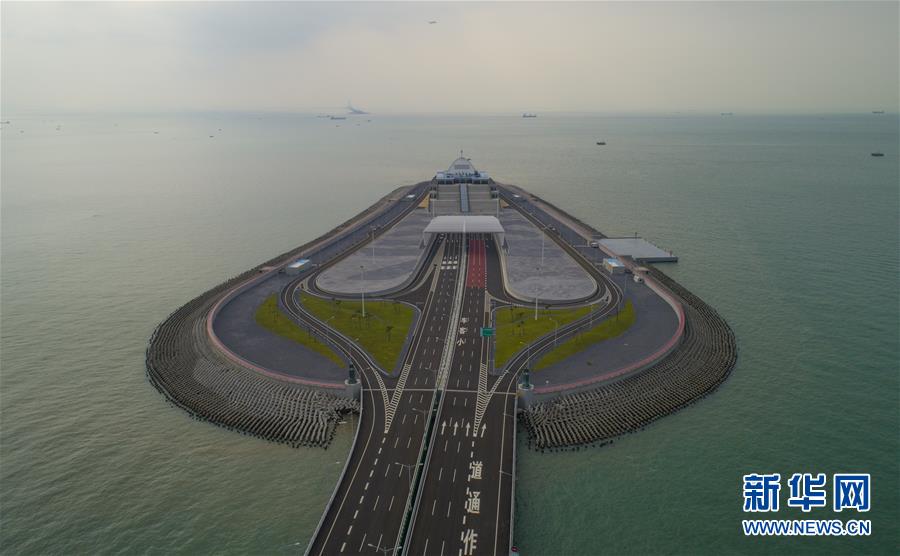 港珠澳大橋香港段人工島(10月13日無人機拍攝)。 即將于10月24日通車的港珠澳大橋跨越伶仃洋,在香港、珠海和澳門三地之間架起一條直接陸路的通道。港珠澳大橋香港段由東端的香港口岸人工島和向西連接大橋主體的12公里香港接線組成,是這一超級跨海通道的重要組成部分。 新華社記者呂小煒攝