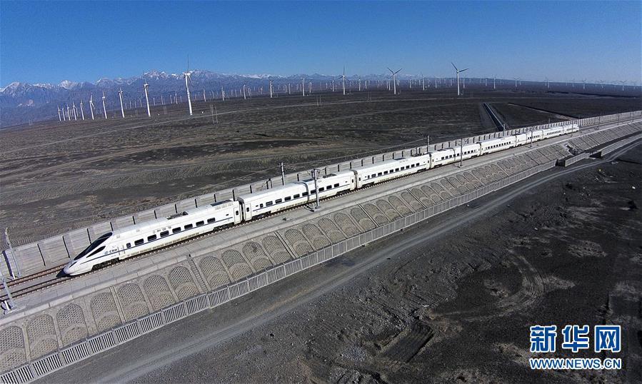 一輛和諧號(hào)動(dòng)車穿行在新疆烏魯木齊達(dá)坂城風(fēng)力發(fā)電場(chǎng)的“風(fēng)車森林”里(2014年11月16日無人機(jī)拍攝)。今年以來,新疆穩(wěn)步推進(jìn)新能源參與“疆電外送”、擴(kuò)大與燃煤自備電廠調(diào)峰替代交易等多種電力交易方式,著力破解“綠色電力”上網(wǎng)難題,新能源發(fā)電量同比增加近13個(gè)百分點(diǎn),而棄電量和棄電比實(shí)現(xiàn)“雙降”,綠色發(fā)展理念進(jìn)一步落實(shí)。 新疆是我國重要的能源供應(yīng)和儲(chǔ)備基地,風(fēng)能、太陽能儲(chǔ)量豐富。近年來,新疆新能源裝機(jī)總量突破2700萬千瓦,規(guī)模和占比均居全國前列。新華社記者 江文耀 攝