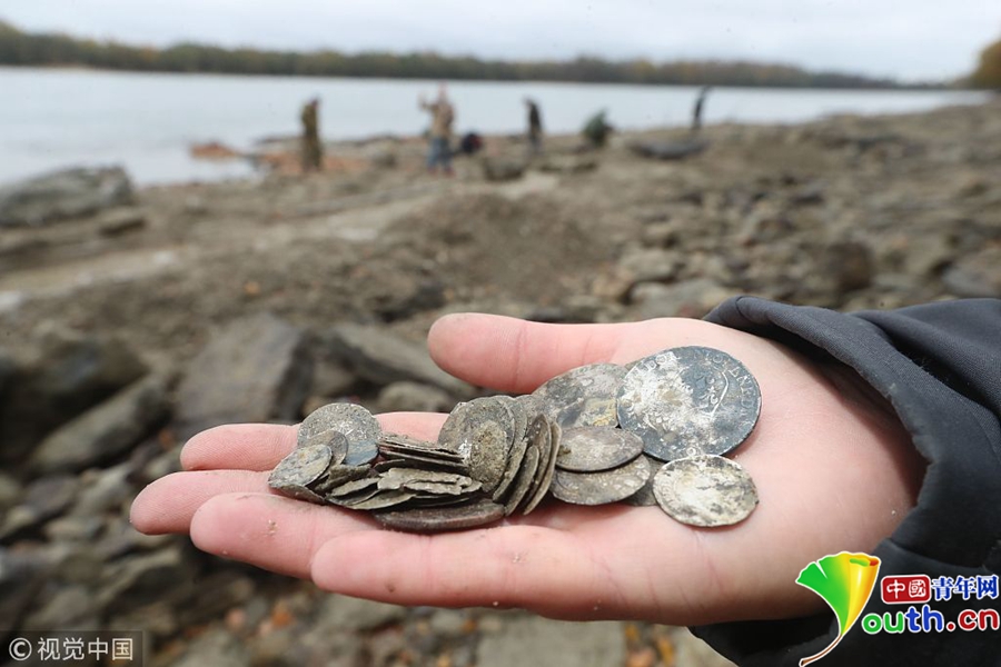 多瑙河水位下降現(xiàn)“寶藏” 考古人員發(fā)掘出大批古錢幣