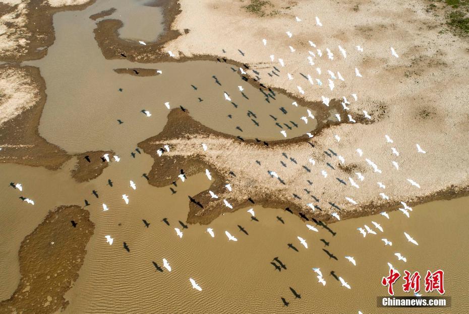 10月4日,在江西鄱陽湖都昌馬影湖水域拍攝的白鷺。金秋十月,生活在江西鄱陽湖區(qū)的白鷺沐浴秋色,濕地上成群的白鷺成為一道靚麗的風(fēng)景。中新社發(fā) 傅建斌 攝