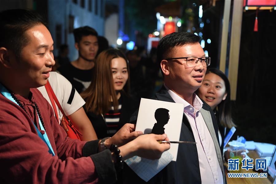 10月29日,在首屆天下碼商大會(huì)碼商集市上,一位剪紙藝人(左)在展示為顧客現(xiàn)場(chǎng)創(chuàng)作的肖像剪紙。 10月28日至30日,由福州市政府聯(lián)合支付寶主辦的首屆天下碼商大會(huì)在福建福州舉行。 新華社記者 姜克紅 攝