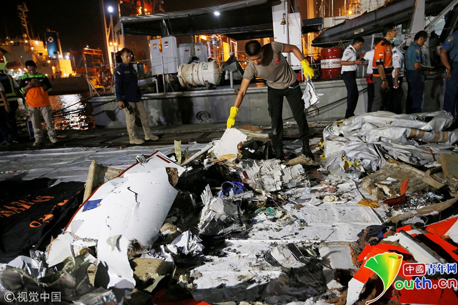目前印尼搜救人員正潛入水中,打撈飛機的主要殘骸。