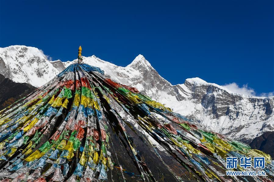 南迦巴瓦峰位于喜馬拉雅山脈東端,海拔7782米,峰頂終年積雪,蔚為壯觀。