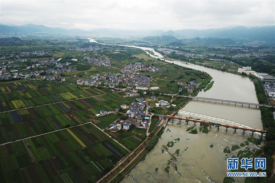 這是2018年4月24日航拍的浙江松陽(yáng)縣齋壇鄉(xiāng)石門(mén)圩村及松陰溪景區(qū)。松陰溪景區(qū)以沿線優(yōu)美的山水環(huán)境、農(nóng)業(yè)景觀為核心載體,通過(guò)濱水綠道,串點(diǎn)成線打造集農(nóng)業(yè)觀光、農(nóng)耕體驗(yàn)、濱水休閑、生態(tài)科普等于一體的江南農(nóng)耕文化活態(tài)公園。新華社記者 黃宗治 攝