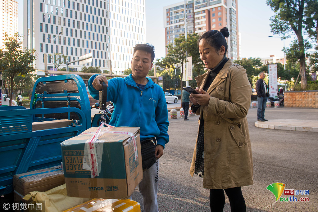 攝影師實(shí)拍90后快遞員熊忠桃的一天工作。作為一名快遞員,他25歲就買了房,9月份收入3萬多。圖片作者:銳圖