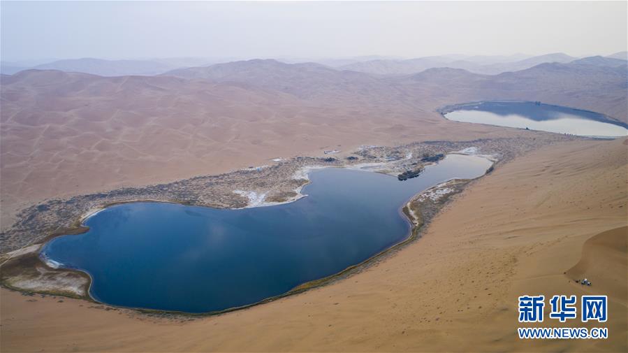 巴丹吉林沙漠中的湖泊,仿佛一顆落在沙中的寶石(10月18日無人機(jī)拍攝)。巴丹吉林沙漠位于內(nèi)蒙古西部阿拉善盟,是中國第三大沙漠,沙丘起伏的曲線陡變成高聳的沙山,碧藍(lán)的湖泊散落在沙海間。新華社記者達(dá)日罕攝