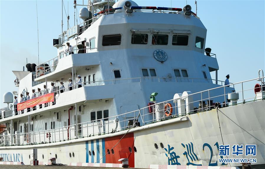 11月3日,“海巡21”輪準(zhǔn)備出發(fā)。 當(dāng)日,隨著“海巡21”輪緩緩駛離??诤J卤O(jiān)管基地碼頭,由瓊桂粵海事部門共同開(kāi)展的瓊州海峽、北部灣及環(huán)海南島水域跨轄區(qū)聯(lián)合巡航執(zhí)法活動(dòng)揭開(kāi)序幕。 新華社記者楊冠宇攝