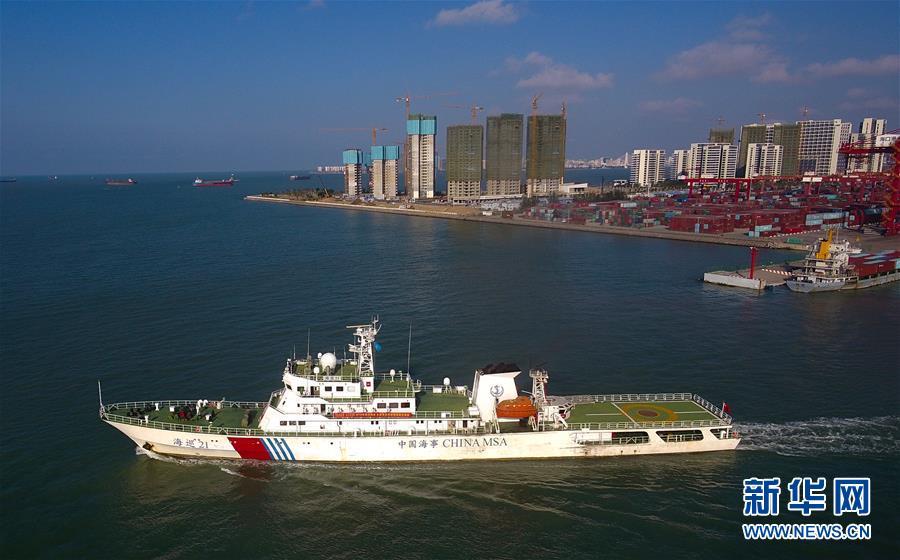11月3日,“海巡21”輪準(zhǔn)備出發(fā)。 當(dāng)日,隨著“海巡21”輪緩緩駛離??诤J卤O(jiān)管基地碼頭,由瓊桂粵海事部門共同開展的瓊州海峽、北部灣及環(huán)海南島水域跨轄區(qū)聯(lián)合巡航執(zhí)法活動(dòng)揭開序幕。 新華社記者楊冠宇攝