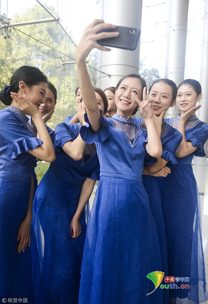 高顏值禮儀志愿者備戰(zhàn)第五屆世界互聯(lián)網(wǎng)大會(huì)