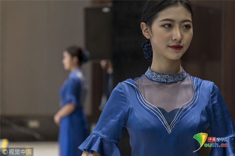 2018年11月5日,浙江嘉興,大會(huì)志愿者“小梧桐”爭(zhēng)分奪秒,在烏鎮(zhèn)展開(kāi)緊張的實(shí)戰(zhàn)培訓(xùn)。阿凡提達(dá)/視覺(jué)中國(guó)