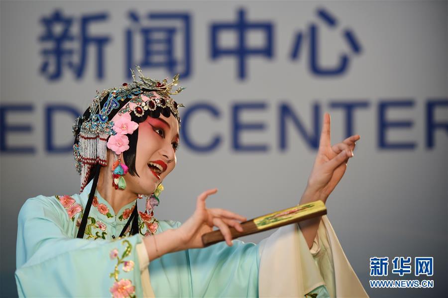 11月4日,在首屆中國國際進口博覽會新聞中心,演員展示昆曲藝術(shù)。新華社記者 韓瑜慶 攝