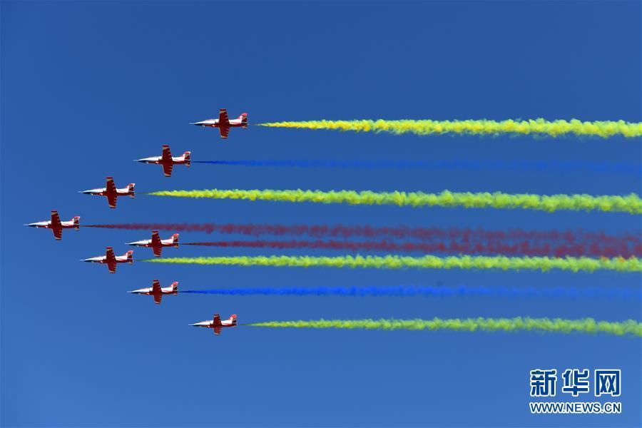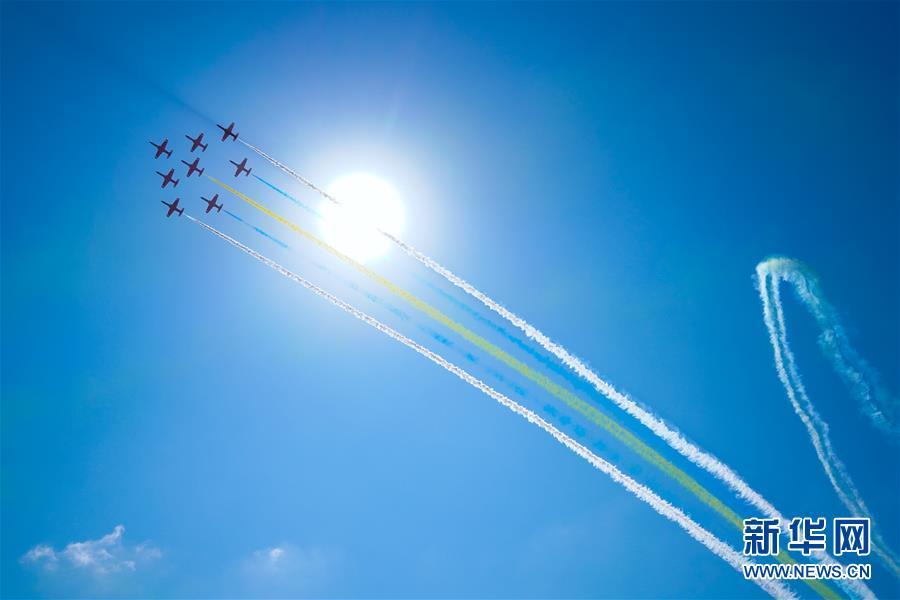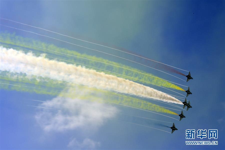 11月6日,中國空軍八一飛行表演隊在航展現(xiàn)場進(jìn)行飛行表演。當(dāng)日,第十二屆中國國際航空航天博覽會在珠海開幕。 新華社記者鄧華攝