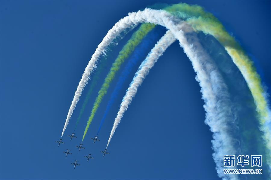 11月6日,空軍航空大學“紅鷹”飛行表演隊在航展現(xiàn)場進行飛行表演。當日,第十二屆中國國際航空航天博覽會在珠海開幕。 新華社記者梁旭攝