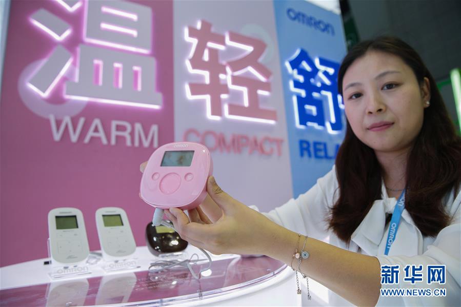 11月6日,日本歐姆龍公司工作人員展示首次在中國亮相的新款溫熱低頻治療儀。該款產(chǎn)品搭載國際疼痛學會定義的能有效緩解女性生理痛的按摩頻率。 新華社記者 張玉薇 攝