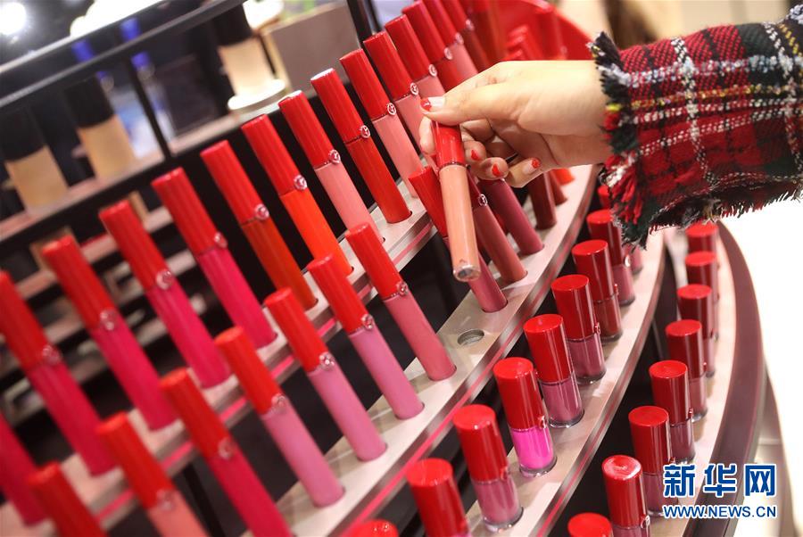 11月6日,參觀者在歐萊雅集團(tuán)展臺(tái)試用化妝品。 新華社記者 陳飛 攝