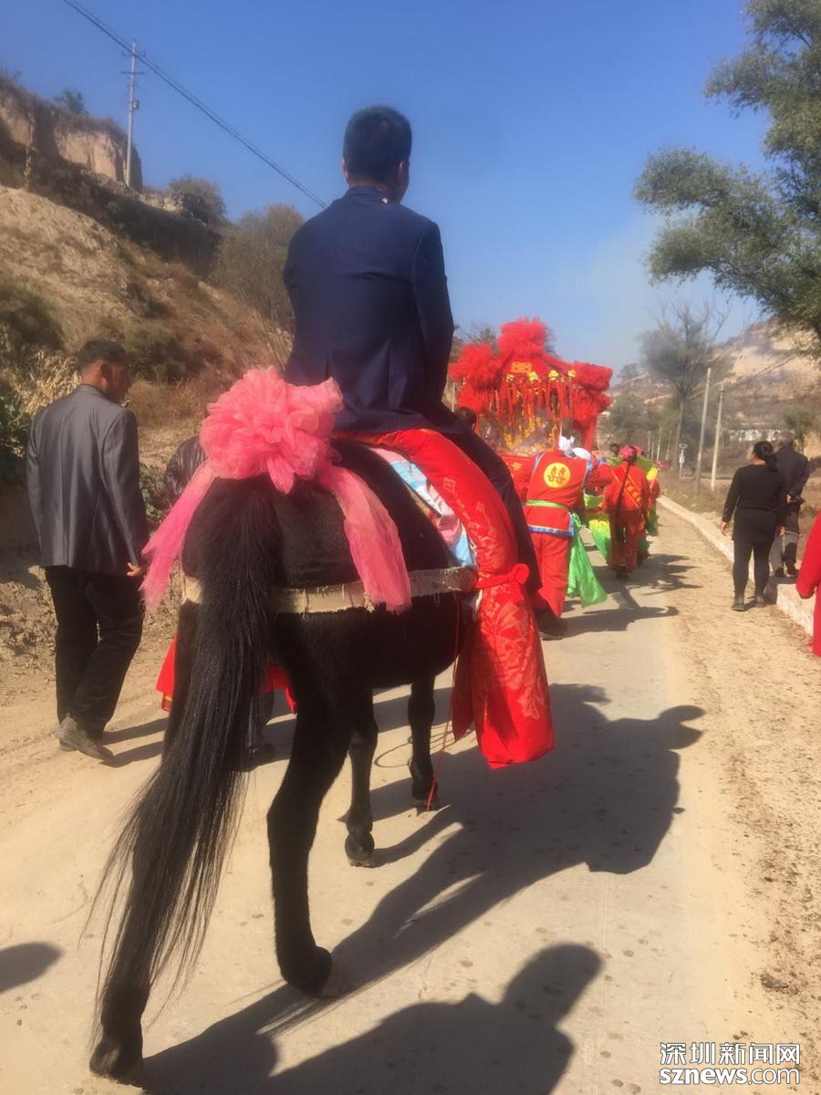 陜北地屬黃土高原,千溝萬壑,修條路對于我爺爺輩兒的人來說難度挺大的,所以趕集上市,毛驢就是主要的交通工具,到我小時(shí)候,趕集都是騎著驢去的。接親也主要是毛驢了,想想結(jié)婚來個(gè)驢隊(duì)接親其實(shí)也蠻拉風(fēng)的。后來有了自行車、摩托車、小汽車……路由羊腸小道到大土路到柏油馬路……毛驢接親就慢慢的消失了。