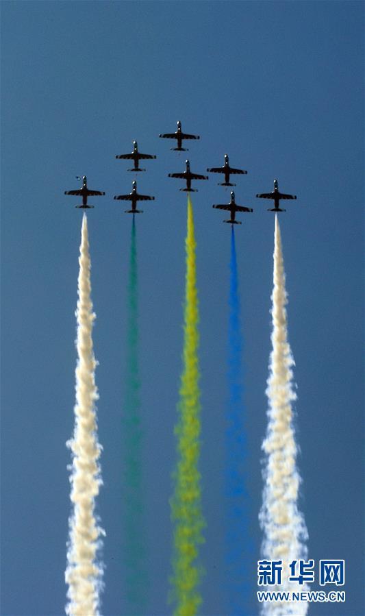 11月6日,中國空軍八一飛行表演隊在航展現(xiàn)場進行飛行表演。當日,第十二屆中國國際航空航天博覽會在珠海開幕。 新華社記者梁旭攝