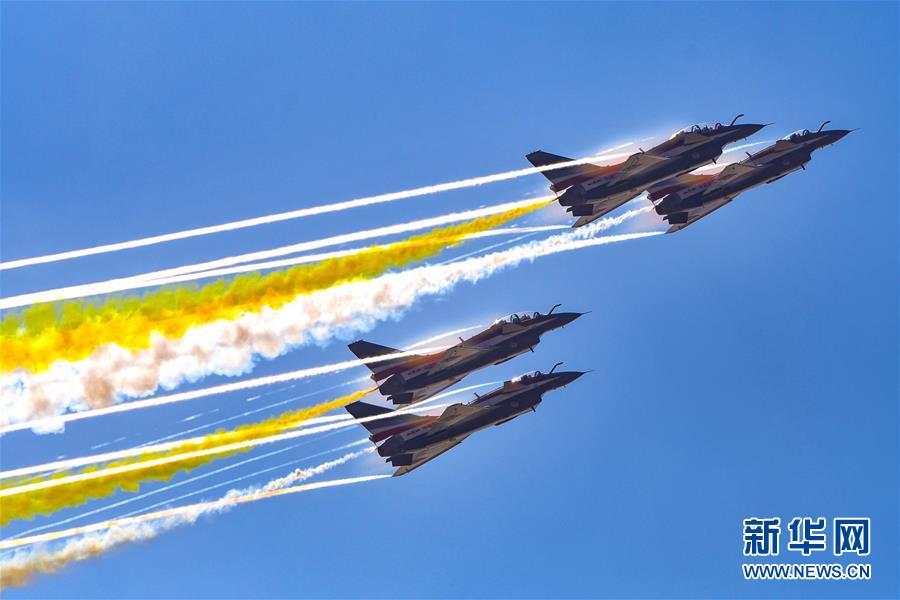 11月6日,中國空軍八一飛行表演隊在航展現(xiàn)場進行飛行表演。當日,第十二屆中國國際航空航天博覽會在珠海開幕。 新華社記者鄧華攝