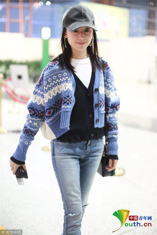 董潔素面朝天現(xiàn)身機(jī)場