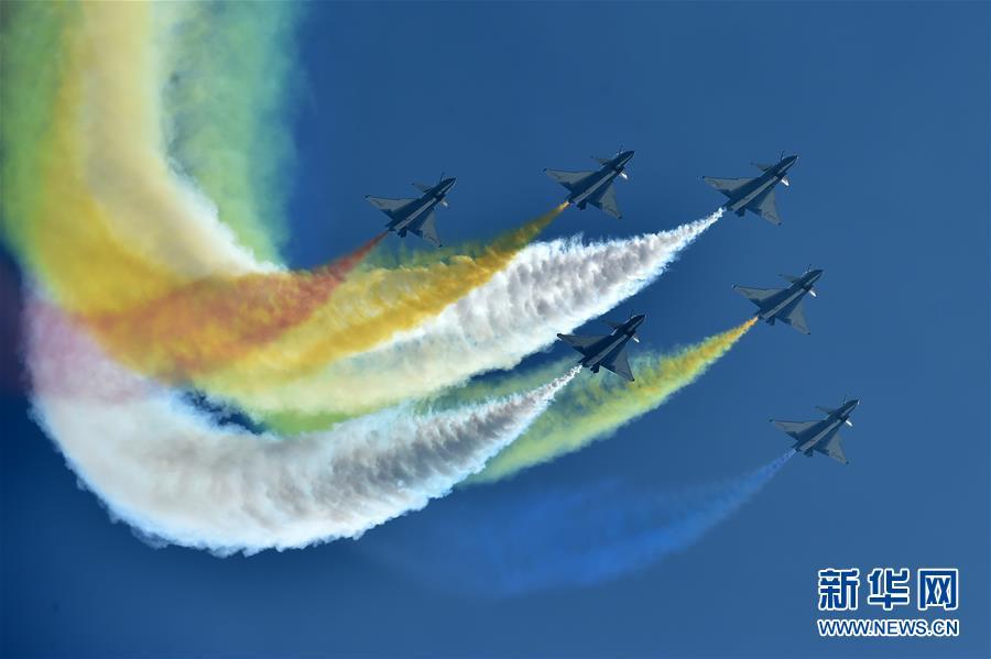 11月6日,中國空軍八一飛行表演隊(duì)在航展現(xiàn)場進(jìn)行飛行表演。當(dāng)日,第十二屆中國國際航空航天博覽會在珠海開幕。新華社記者鄧華攝