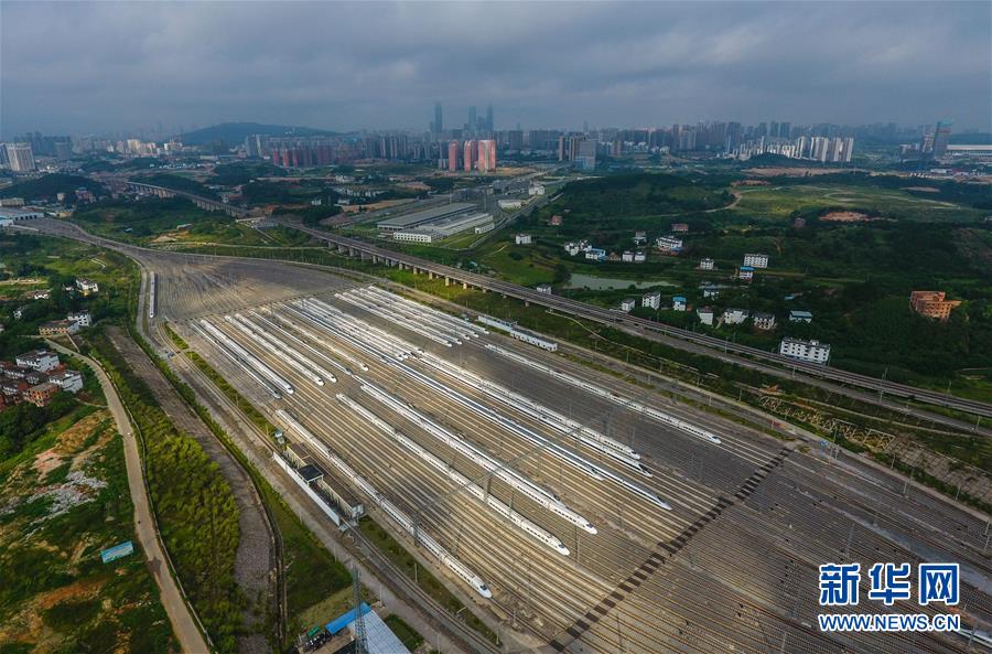 這是廣西南寧動(dòng)車(chē)所內(nèi)準(zhǔn)備發(fā)往各地的動(dòng)車(chē)組列車(chē)(7月1日無(wú)人機(jī)拍攝)。 近年來(lái),廣西在海、陸、空立體式推進(jìn)與東盟國(guó)家的互聯(lián)互通,扎實(shí)推進(jìn)“高速縣縣通、高鐵市市通、民航片片通、內(nèi)河條條通”建設(shè)。目前高鐵運(yùn)營(yíng)里程1751公里,高速公路總里程突破5000公里,沿海和內(nèi)河港口年吞吐能力分別達(dá)2.5億噸和1.1億噸,機(jī)場(chǎng)旅客年吞吐能力近3000萬(wàn)人次,內(nèi)外交通便捷度全面提升。 新華社記者 黃孝邦 攝