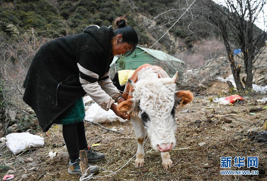 在西藏昌都市江達縣波羅鄉(xiāng)境內的康扎西安置點內,群眾在喂養(yǎng)小牛犢(11月11日攝)。 西藏自治區(qū)江達縣波羅鄉(xiāng)康扎西安置點,離波羅鄉(xiāng)政府直線距離約3公里,位于一處地勢開闊平緩的山谷中,比堰塞湖水面高出100多米。10月11日金沙江白格段山體滑坡發(fā)生后,當?shù)鼐驮谶@里設立了安置點,安置附近受災群眾。 新華社記者 劉東君 攝
