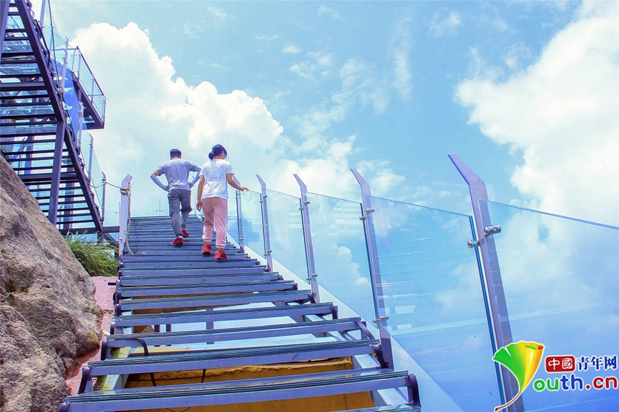 在去年十一前,金子山建成了廣東海拔最高的玻璃廊橋與觀景平臺(tái),兩大玻璃產(chǎn)品均建在海拔1417米的最高峰上。今年十一前,又建成了玻璃天梯。