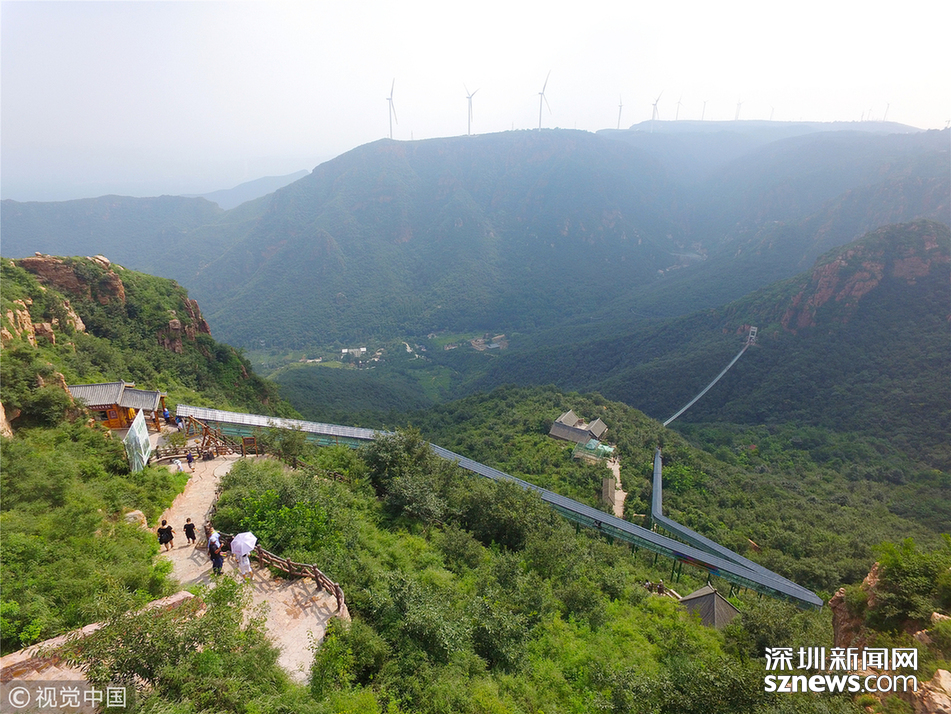 實(shí)拍地坑院景區(qū)玻璃天橋 全長(zhǎng)318米高108米