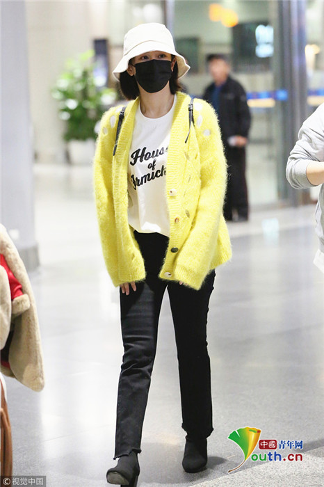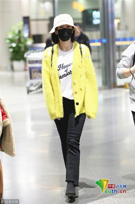 日前,楊紫現(xiàn)身長沙黃花機場,她頭戴漁夫帽的她口罩遮面,身著鮮黃針織衫相當搶眼,一路獲粉絲跟拍。